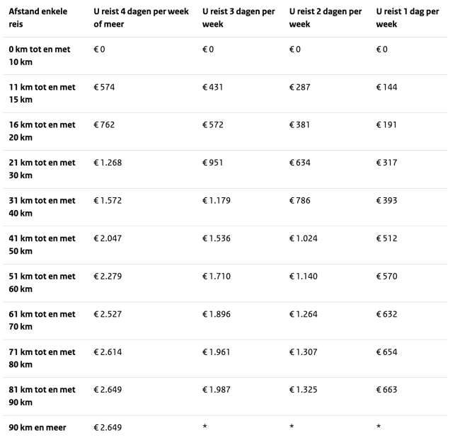 *The travel deduction in this case is €0.29 per kilometer of the one-way distance multiplied by the number of days you traveled in 2026. The deduction is a maximum of €2,649.