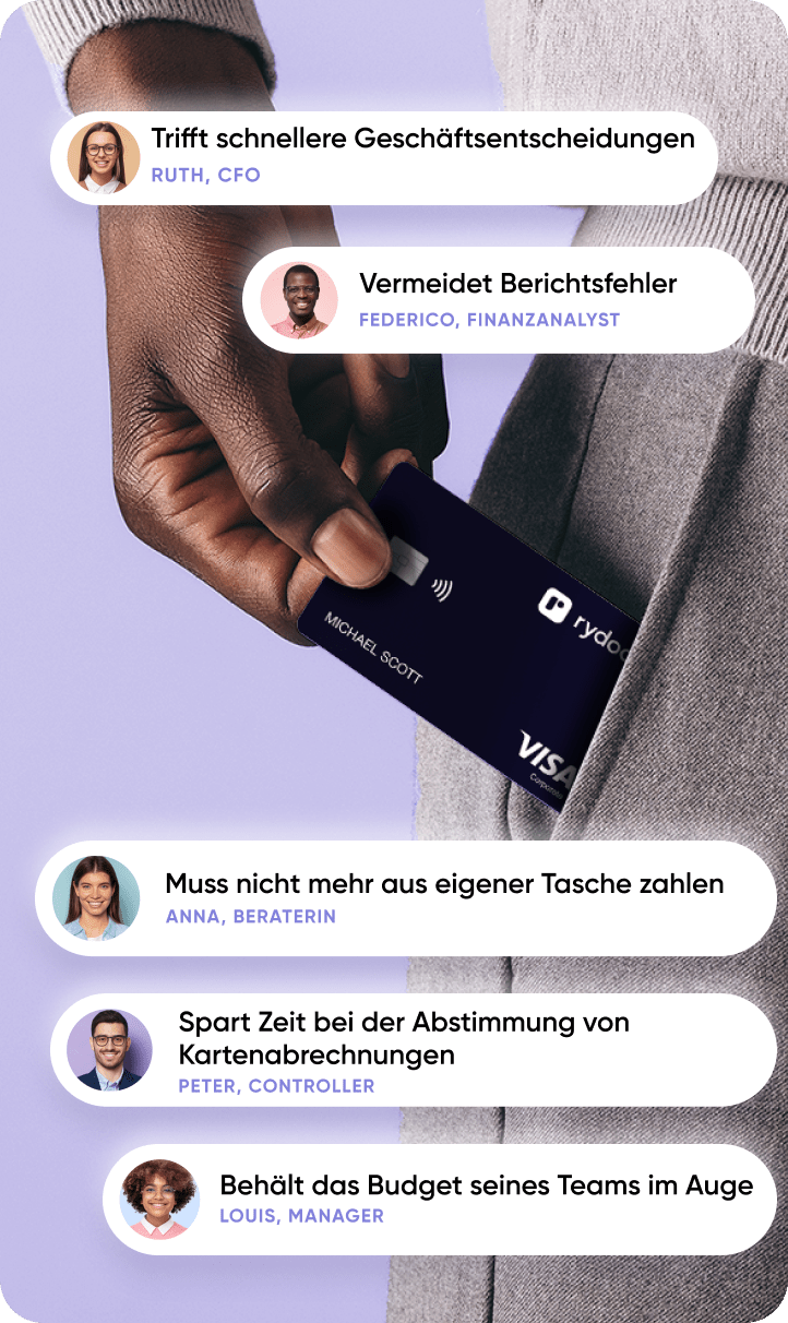 Alles integriert in Rydoos Spesenmanagement-Plattform.