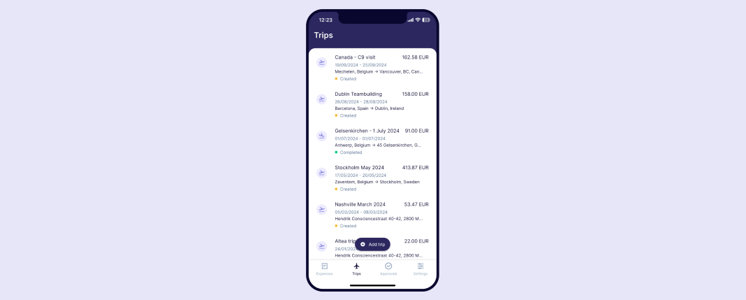 On that page, you also have an overview of all trips, which can be edited or deleted. You can also create expenses from a trip and view all the expenses linked to it.