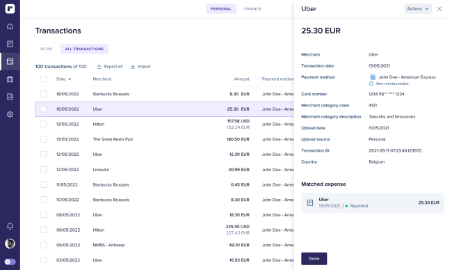 However, Rydoo won’t be able to detect a match if the basic information between a transaction and an expense is different (F.e. the amount is slightly different because of the exchange rate).