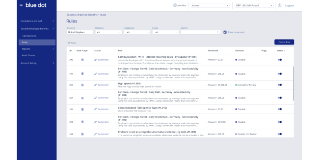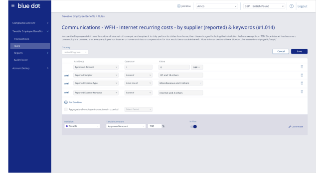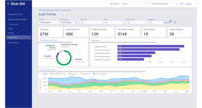 - Blue dot supports VAT recovery and determining taxable fringe benefits related to employee expenses for countries all around the globe.