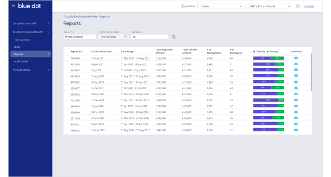 - Blue dot’s integration with Rydoo enables organisations to automate the reporting of employee Fringe Benefits associated with employee expenses.