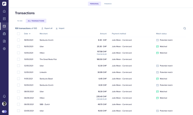• Card reconciliation: Thanks to the integration, the system automatically links and coordinates expenses with Credit Card Transactions