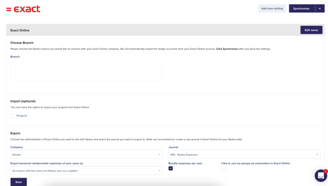 Access chart of accounts, projects, VAT rates, and more simply by connecting your current Exact Online account to your Rydoo account: