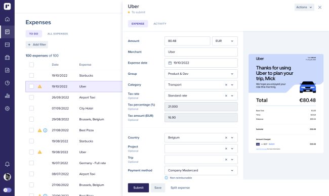 The Uber integration allows you to automatically create an expense from your business rides. All you have to do is add Rydoo as an expense provider in your Uber Business Profile and you are ready to ride.