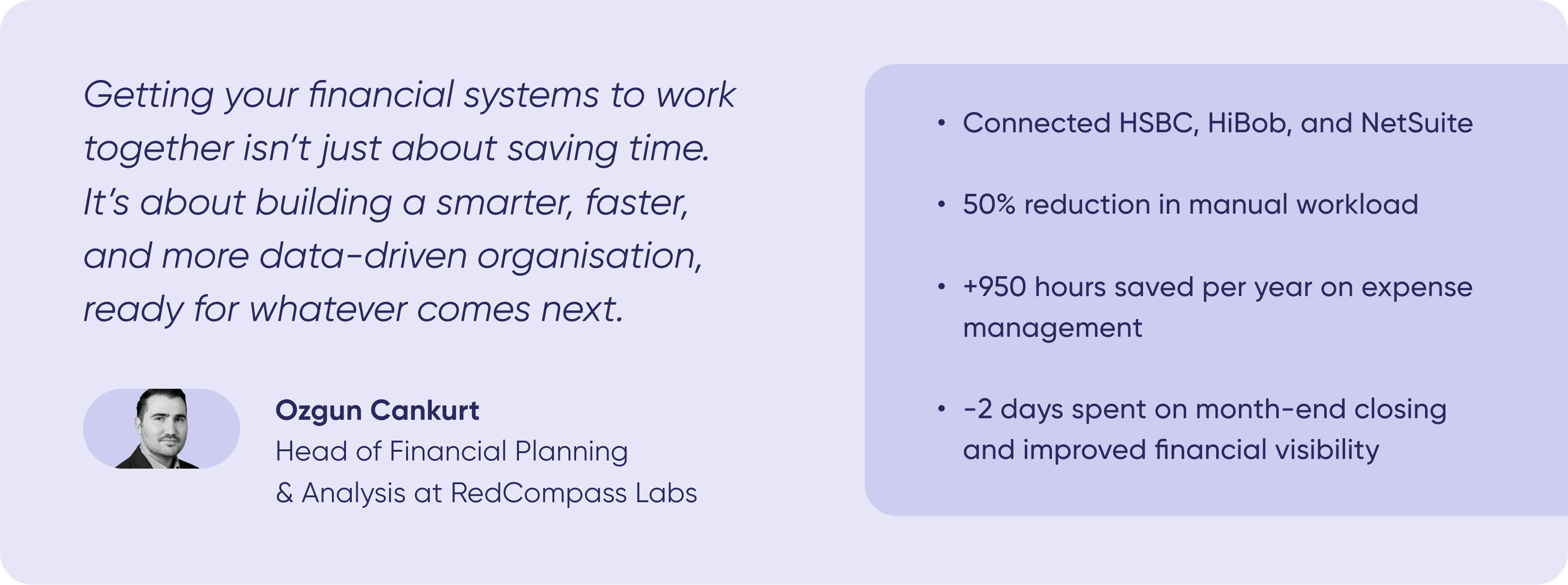 For any company looking to scale efficiently and build stronger financial processes, RedCompass Labs is a powerful example of what’s possible when you put integrations at the centre of your strategy.